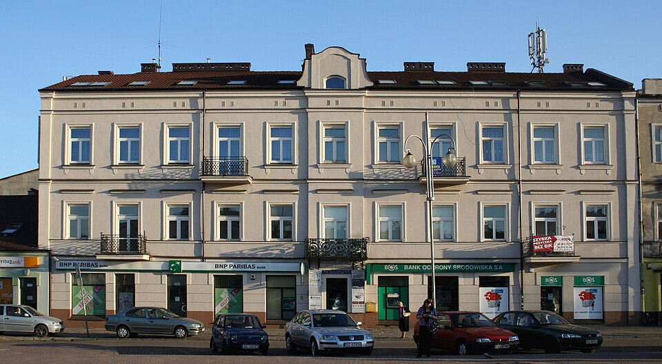 Otoczony XIX-wiecznymi kamienicami, w większości należącymi do narodowości żydowskiej.
