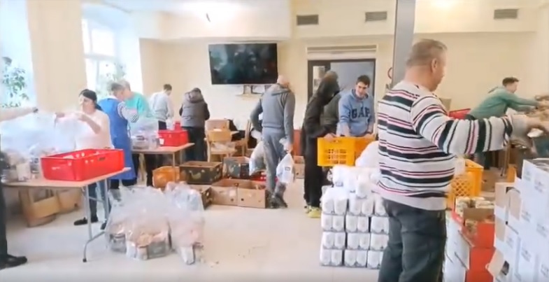 Na początku stanowiska z produktami – ktoś podawał chleb, ktoś inny cukier, dalej konserwy. Potem stoły do pakowania i wiązania paczek. Każdy wiedział, co ma robić. Nie było chaosu – był rytm, tempo i zaskakująca precyzja.